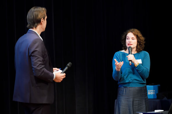 Bezoeker Sylvie Kars maakt aantekeningen van de vragen. Ze is voorlichter bij Freya, een vereniging voor ouders met vruchtbaarheidsproblemen. “Ik vind het machtig interessant om de mogelijkheid van een kunstmatige baarmoeder te zien. Ik verwachtte science-fiction-taferelen, maar hier pas realiseer ik me dat het op dit moment een oplossing kan zijn voor vroeggeboorten. Dat maakt het minder bizar. En we moeten praten over de mogelijkheden van techniek. Daar kun je niet omheen.”