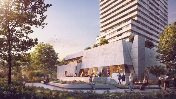 In het onderste gedeelte van de Bunker, de zogeheten 'plint', zijn kantoren en werkplekken voorzien, evenals een grand café. Dat laatste noemt Colenbrander wel het minimale dat erin moet komen. "Vroeger was de Bunker een gebouw dat aan de periferie van de stad lag, maar door de stedebouwkundige ontwikkelingen die nu plaatsvinden met Eindhoven en de aanstaande uitbreidingen, is het op een scharnierpunt komen te liggen. Maar ja, het is wel een project waarmee men op commerciële basis aan de slag gaat. Ik hoop alleen dat het niet allemaal te gelikt wordt."