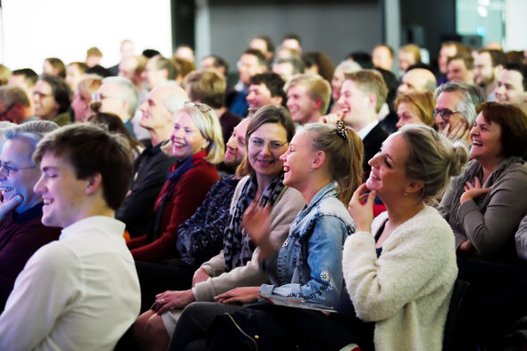 Maar boven alles domineerde de glimlach - zowel op de gezichten van de deelnemers (en hun aanhangers in de zaal) als die van de drie juryleden. Ondanks de vele knipogen in hun commentaren waren ze onder de indruk van het lef van de deelnemers, die ter ere van het elfde lustrum van studentenmuziekgezelschap Quadrivium (dat voor 'Maestro' de handen ineensloeg met Studium Generale) zo nadrukkelijk uit hun comfortzone waren gekomen.