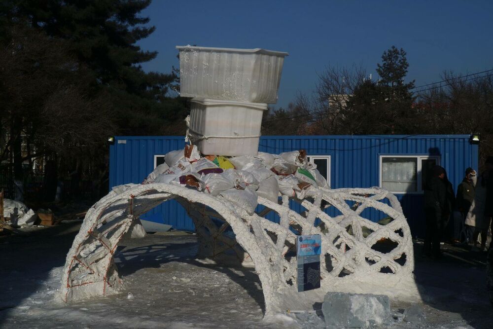 Temperaturen van nauwelijks min zeven graden Celsius; Arno Pronk, verscholen in zijn kantoortje helemaal bovenin Vertigo, lacht erom. Terwijl buiten de sneeuwvlokjes naar beneden dwarrelen, vertelt hij over Harbin, de Noord-Chinese stad waar hij de afgelopen maand diverse malen geweest is om leiding te geven aan zijn meest recente ijsproject, het bouwen van een gridshell van 3D-geprint ijs. Harbin, dat op dezelfde hoogte ligt als Marseille, krijgt in de winter extreem koude wind te verduren die direct uit Siberië afkomstig is, en op veel dagen staat de thermometer dik in de min en ’s nachts zakt de temperatuur vaak nog tien graden lager. Geen prettige condities om in te werken, maar het zijn wel de ideale omstandigheden voor Pronk voor het uitvoeren van zijn projecten.