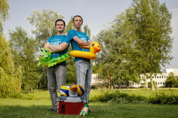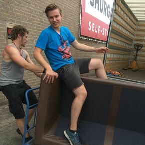 “Dit jaar hadden we twee plannen. Het ene is wat Mario kart-achtig, met skelters waarop deelnemers elkaar achtervolgen terwijl ze dan ballonnen kapot schieten met handbogen. Het andere plan heeft twee opgeblazen glijbanen waarop de volleyballers paintballen met waterballonen”, zegt Dennis. “Nu is voor 99 procent zeker dat er iets met luchtkussens gaat gebeuren. En met water en schuim.”