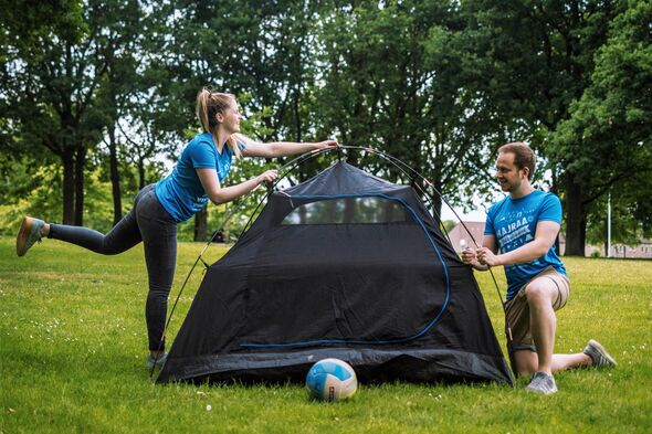 Behalve bierkratjes hebben ze ook stroom en water aangevraagd voor de locatie waar zij een haat-liefde verhouding mee hebben. “Het is prachtig, want iedereen moet er langs, het ligt tussen de wedstrijdvelden en de camping. Maar het is ook klote, want we staan op kunstgrasveld en daar mag nog geen haring de grond in.” Laat staan een stevige paal.