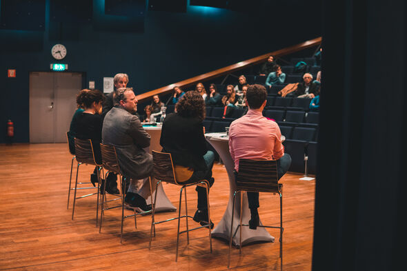 Na de lezing volgde een paneldiscussie met daarin - naast Van Veelen - TU/e’s Chief Diversity Officier Evangelia Demerouti, hoogleraar Wijnand IJsselsteijn en studenten Ana Xambre Pereira en Hugo Bezombes. Aan de hand van diverse stellingen werd met de zaal verder gepraat over het onderwerp.