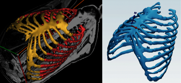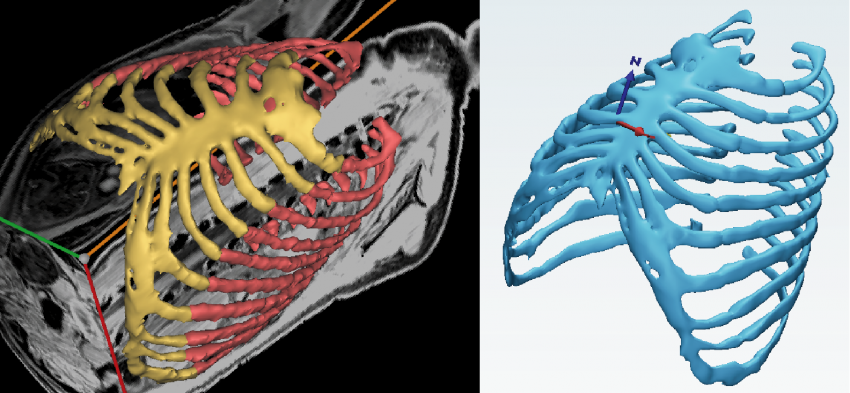 Het 3D-printen van de ribbenkast was een echte uitdaging, een enorme inspanning die maanden werk vergde, zegt Thielen. “Ik heb uren en uren besteed aan het identificeren van de randen van elk bot in de MRI-beelden, stuk voor stuk. Vaak gaf het automatisch laten analyseren van de beelden door beeldsoftware onbevredigende resultaten, dus moest ik opnieuw beginnen en alles handmatig doen.” Er werd ook veel aandacht besteed aan het 3D-printen van het hart, een model dat bestaat uit vier interne ruimtes met zelfs vier hartkleppen.
