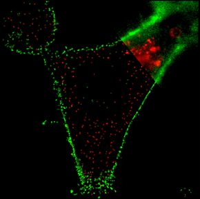 Dat is niet zo makkelijk, aangezien kankercellen erg lijken op gezonde cellen. Albertazzi focust op de zogeheten receptoren, eiwitten aan de buitenkant van de cel waarmee deze herkenbaar is voor de buitenwereld. Een gezonde cel die is getransformeerd in een kankercel zal het type en het aantal receptoren veranderen. Dit proces kan worden gebruikt om de tumorcellen te herkennen en om medicijnen specifiek aan de zieke cellen af te geven, terwijl de gezonde cellen minder door de medicijnen worden beïnvloed.