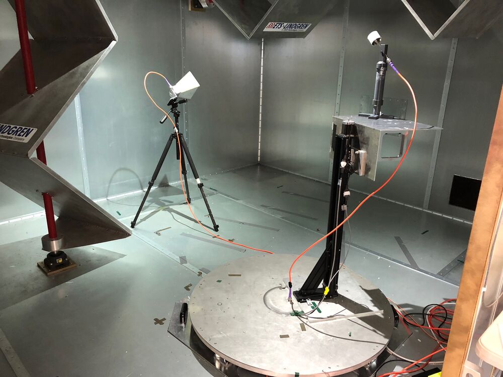 Ook hier trad Bronckers, die inmiddels universitair docent is bij EE, buiten de gebaande paden. “Dergelijke metingen vinden traditioneel plaats in anechoïsche of ‘dode’ kamers, zonder elektromagnetische reflecties. Dat is nu eenmaal hoe je het best stralingspatronen kunt meten. Maar het vaststellen van antenne-efficiency werkt eigenlijk veel beter in een reverberation room, met maximale reflecties (in de akoestiek bekend als ‘galmkamer’, red.).”