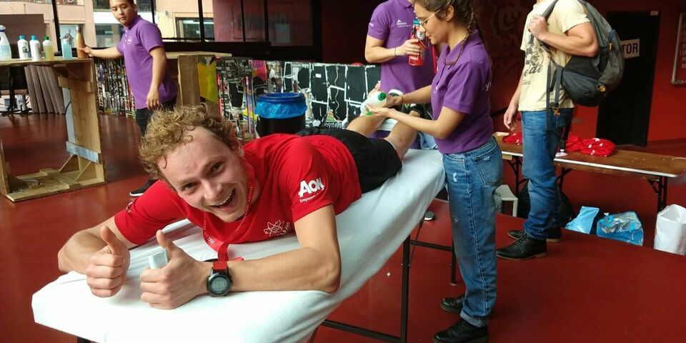 Voor de TU/e-lopers was een trefpunt annex omkleedlocatie gereserveerd in jongerencentrum Dynamo in de binnenstad, in overleg met Fontys Hogescholen dat die locatie al voor haar eigen lopers had geregeld. Fysiotherapiestudenten van Fontys gaven er massages aan lopers, “ook aan mensen uit ons team”.