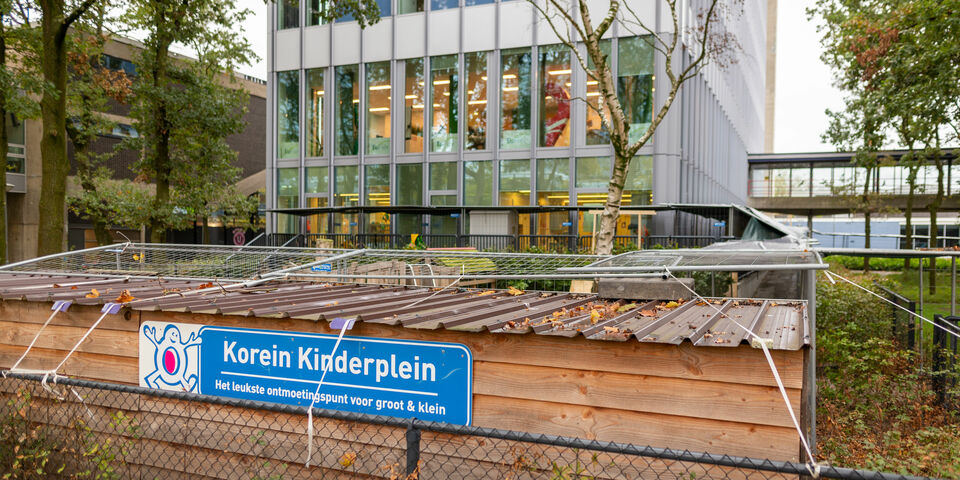 Peters: “Om een veilige situatie te creëren voor de kinderen van Korein Kinderplein, zal een blijvende overkapping worden geplaatst over de buitenspeelplaats en over de hellingbaan voor de Spar. Hiertoe is afgelopen week een proefopstelling geplaatst om te kunnen beslissen welke vorm van overkappen de meest wenselijke is.” Wanneer de overkapping is geplaatst, verdwijnt het tijdelijke speelveldje weer.