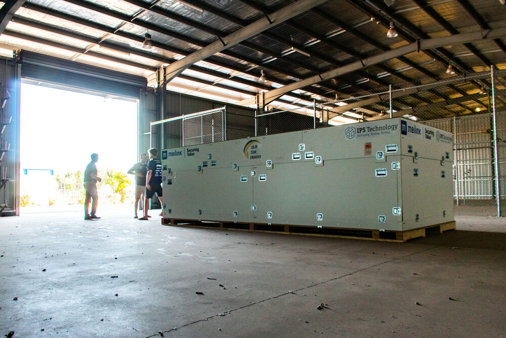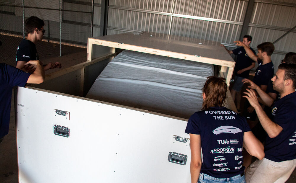 Maar donderdag, met de laatste kilometers van de traditionele reversed oefentrip van Adelaide naar Darwin voor de boeg, kwam het verontrustende bericht: de zonnewagen was keurig gearriveerd op het Australische honk van de Eindhovenaren, maar de kist waarin ze was vervoerd, had onderweg schade opgelopen.