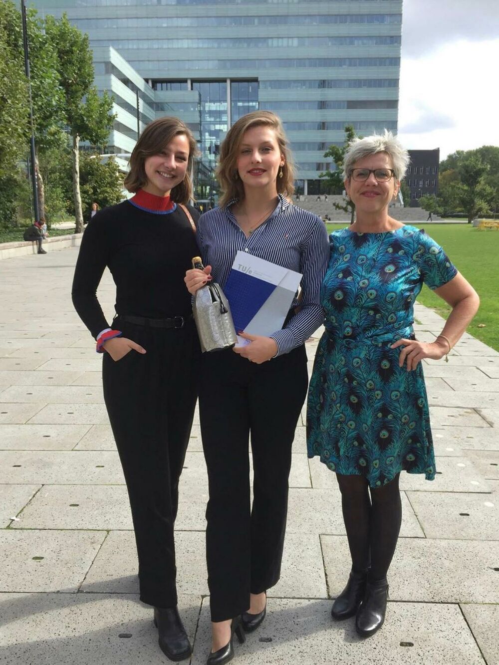 12.05 uur | Vanmiddag wordt onder meer de jaarlijkse Marina van Damme-beurs uitgereikt, voor de 38e keer inmiddels. De Delftse alumna Marina van Damme wil hiermee jonge vrouwelijke ingenieurs een handje helpen bij hun ontwikkeling en carrièrepad. Aan elk van de Nederlandse technische universiteiten is één winnares; vorig jaar was in Eindhoven promovenda Milou Feijt (hieronder op de foto met Marina van Damme) de gelukkige. In dit liveblog lees je straks uiteraard wie de nieuwe winnares is!