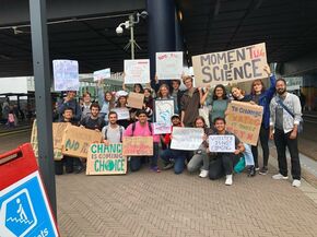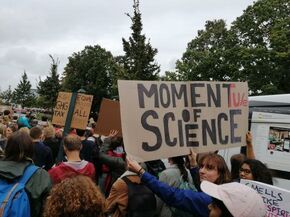 13.53 uur | Niet alleen in Eindhoven wordt vandaag een 'momentum' gecreëerd, maar ook in Den Haag. In de stad vindt een mars plaats in het kader van de wereldwijde klimaatprotesten van vandaag. Ook een groep TU/e'ers toog deze vrijdag naar de Zuid-Hollandse stad om van zich te laten horen, maar met MomenTUm in het achterhoofd, getuige één van hun protestborden. Vanavond, op de Student Party in de markthal, haken ze trouwens weer aan voor de Eindhovense feestelijkheden, laat Sidharth Suri (Scheikundige Technologie) weten. Maar nu eerst op de barricades!