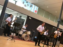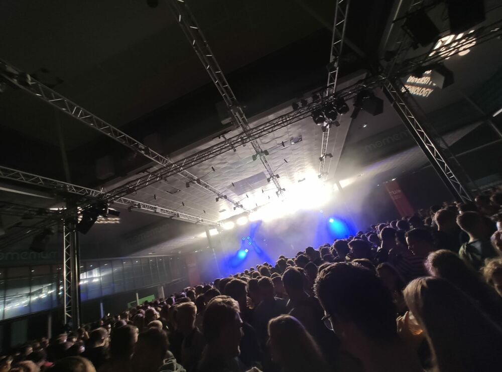 21.28 uur | Onherkenbaar. De markthal van MetaForum, waar vanmiddag nog bijna dertienhonderd afstudeerders en honderden andere gasten genoten van de sjieke MomenTUm-ceremonie, is inmiddels omgetoverd tot een tijdelijke concertzaal. En het is er al gezellig druk.