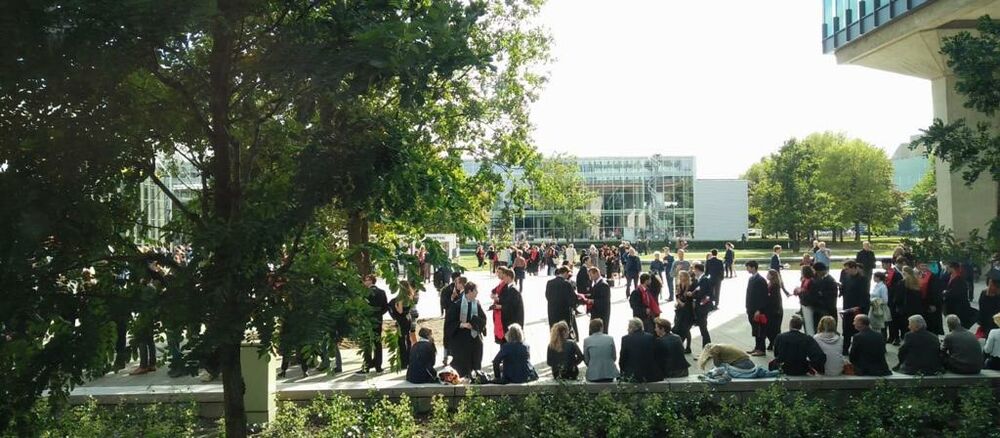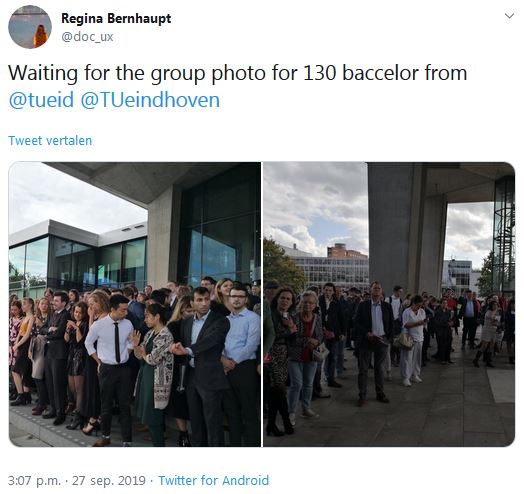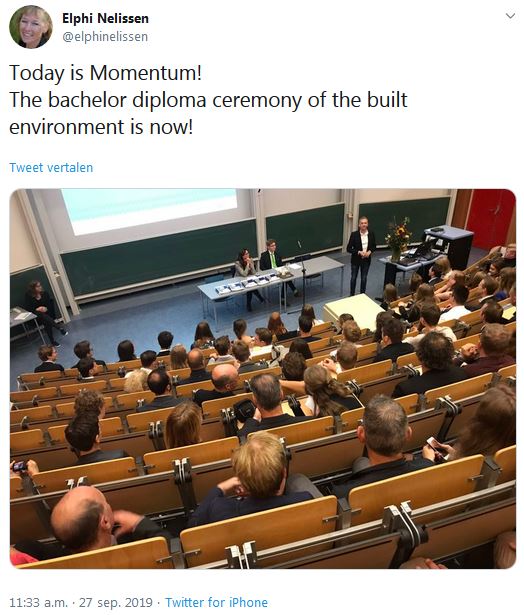 15.03 uur | De verzamelde mama- en paparazzi na afloop van één van de afstudeerceremonies van de faculteit Bouwkunde van vandaag. "Evenveel fotografen als afgestudeerden", aldus hoogleraar Elphi Nelissen, die onderstaande foto maakte en tweette.