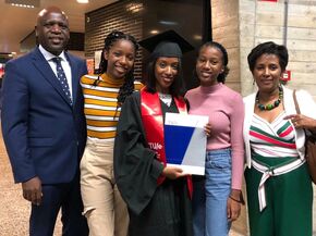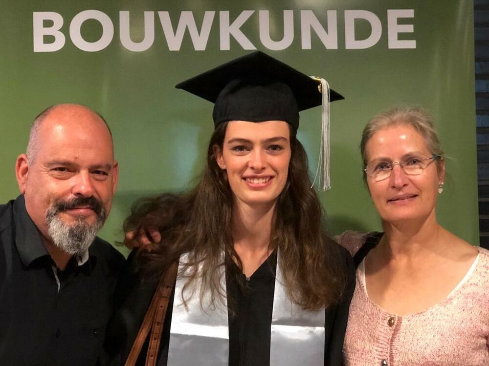 En linksonder glunderen we nog even verder met Bethel Lemma (Bouwkunde), poserend met haar trotse ouders en zusjes. Op de foto rechtsonder stralen Josien de Koning, ook van Bouwkunde, en haar ouders éxtra hard, want: cum laude!