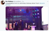 Ook professor Forlizzi liet weten enorm vereerd te zijn. En wilde haar gehoor van vandaag graag twee volgens haar belangrijke zaken meegeven over design. "Design is sociaal en gaat over samenwerken. Je zult in je loopbaan veel mensen tegenkomen; neem van elk van hen iets mee, goed of slecht, en leer daarvan. En: design betekent proberen en falen. Falen is onvermijdelijk. Dus leg je erbij neer en profiteer."