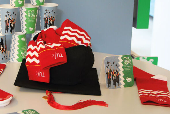 11.31 uur | Een toga voor elke afstudeerder, bloemen, consumptiemuntjes - in de collegezalen van het Auditorium (zoals hier, bij de diploma-uitreiking van de faculteit Scheikundige Technologie) ligt voor elke afstudeerder een keurig pakketje klaar. Een klein deel van de afstudeerders draagt later vandaag, tijdens de MomenTUM-ceremonie in de markthal, geen rode, maar een zilverkleurige sjerp. Zij verdienden het predikaat 'cum laude'.