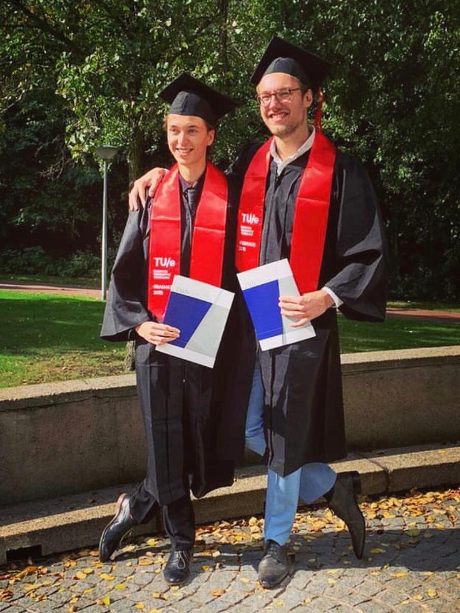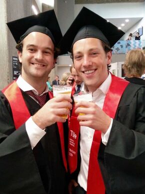 14.24 uur | Faculteitsgenoten Johan Kon en Tijmen Vermeij, beiden van Werktuigbouwkunde, leverden respectievelijk de beste bachelor- en masterscriptie van de TU/e van dit jaar.