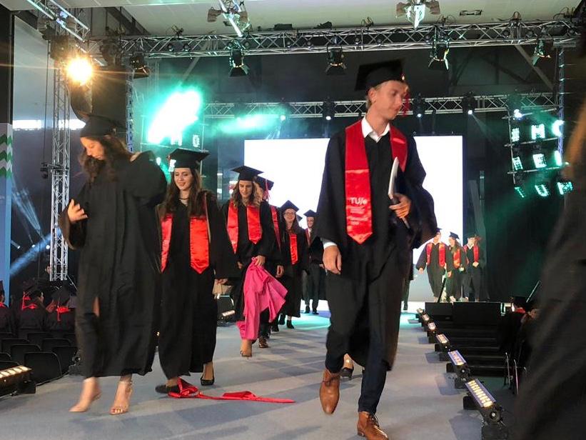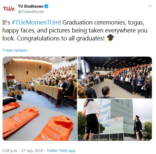 Maar bovenal zet de universiteit tijdens MomenTUm ook haar afstudeerders in het zonnetje. Zo'n 1150 bachelors en 140 masters vieren vandaag hun behaalde titel en maken vanmiddag in de markthal een ereronde over de Walk of Fame. Vorig jaar mochten nog alleen afgestudeerde bachelors deelnemen aan de ceremonie.