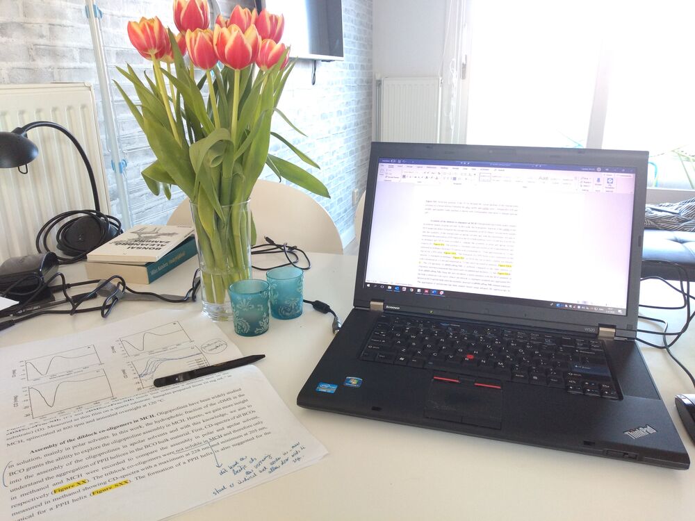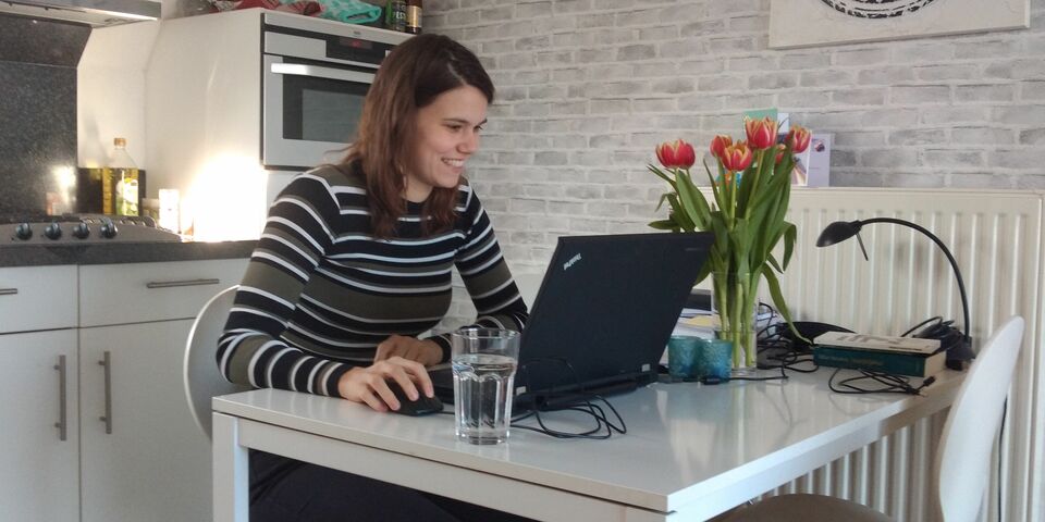 Nu duidelijk is dat het thuiswerken nog wel wat langer gaat duren dan tot 6 april, wordt de berusting zelfs alleen maar groter, merkt de onderzoekster. “Op een van mijn laatste dagen op de campus zei ik nog: ‘ík weet écht niet wat ik thuis drie weken lang moet doen’. Ik was ook net weer veel op het lab bezig. Maar mijn copromotor zei: ‘je kunt al zoveel doen, je kunt eigenlijk bijna je hele thesis al schrijven’. Niet het leukste om te doen, maar het moet toch. Die knop heb ik nu wel omgezet. Het is ook heel fijn om thuis te schrijven, zonder afleiding van mensen om je heen; op de uni zou ik al gauw twee keer zolang bezig zijn, denk ik.”