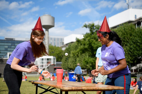 De businesscase bedacht door Protagoras bestaat uit tien verschillende spelletjes. Minute to win it, bierpulsjoelen (gevuld met water), match zoeken tussen babyfoto’s en huidige foto’s van het bestuur, noem maar op. Wij gingen kijken bij het letterspel, gebaseerd op tv programma ‘De jongens tegen de meisjes’.