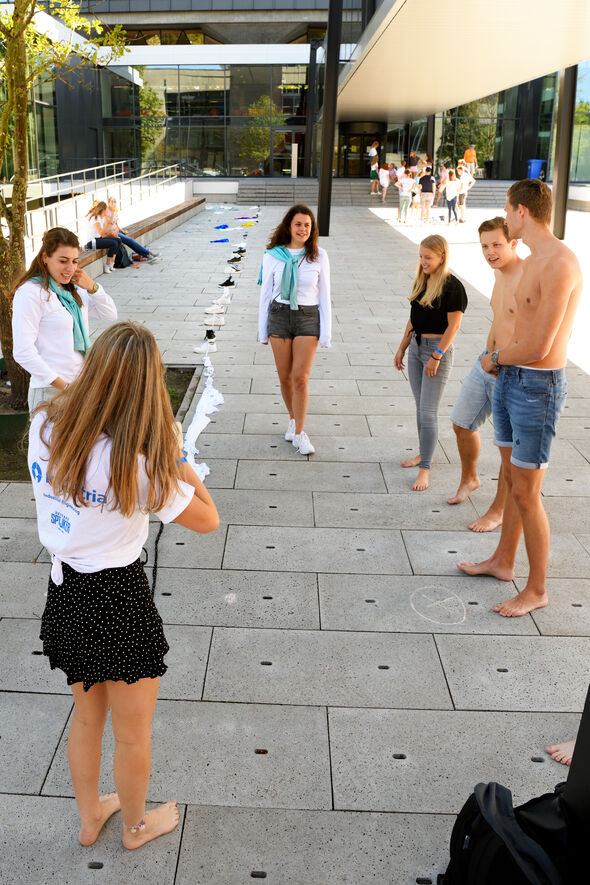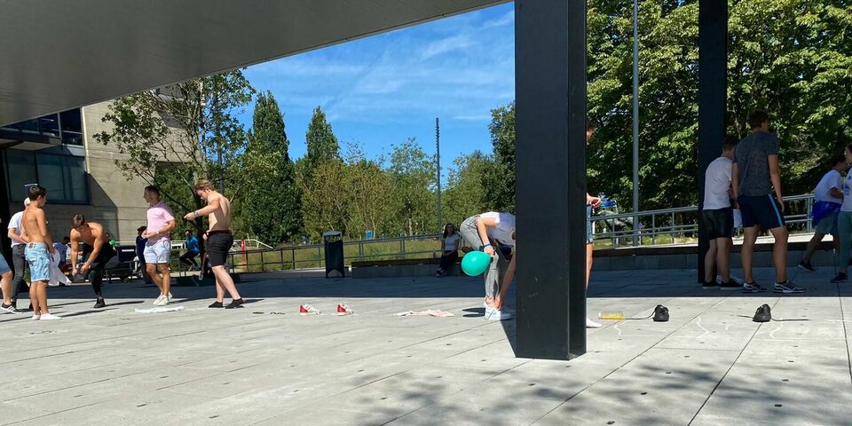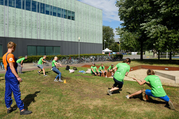 De laatste Introdag is halverwege en de shirtjes zijn inmiddels op 1,5 meter te ruiken. Deze vrijdag worden er vooral veel spellen gespeeld om de teambuilding te ondersteunen. Maar er is ook zeker competitiviteit merkbaar, zoals bij het touwtrekken van CHEOPS. En het werd nog even heet: ontblote dames en heren voor de klassieke kledinglijn van Industria.