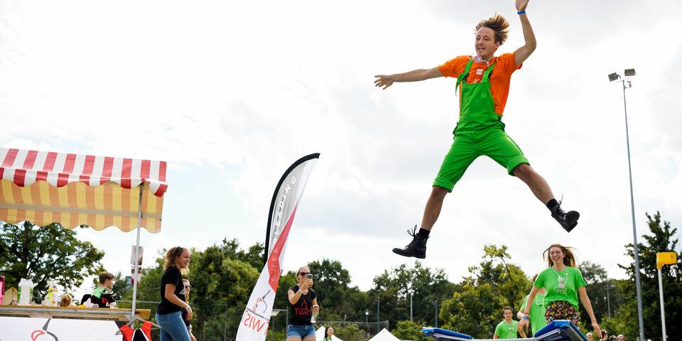 Een eierrace op een laken van twee bij twee meter. Dertig meter sprinten op anderhalve meter afstand van je tegenstander en de zeeptacklebaan ontsmet je in een moeite door. Als je het veld bij Aurora oploopt, lijkt het bijna een normale Intro: alle aspecten van gezellige sport- en spelactiviteiten zijn aanwezig en zo ook de kennismaking met de bijbehorende verenigingen. De introkids doen onverminderd enthousiast mee.