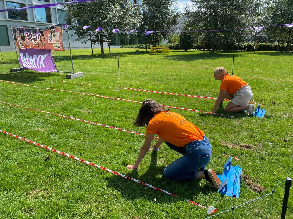 Bij atletiekvereniging Asterix kan er gestreden worden om de snelste tijd op de dertig meter sprint. En een tegoedbon voor de stamkroeg Kix. Als de kids het lief vragen mogen ze ook nog wel even lopen tegen Introcommissielid Lorens Niehof, al is de dertig meter niet zijn specialiteit zegt hij daar direct bij. “Naast de sprint dagen we de introkids ook uit met polsstokhoogspringen", wijzend naar een stok die geduldig wacht op de eerste lenige dames en heren.