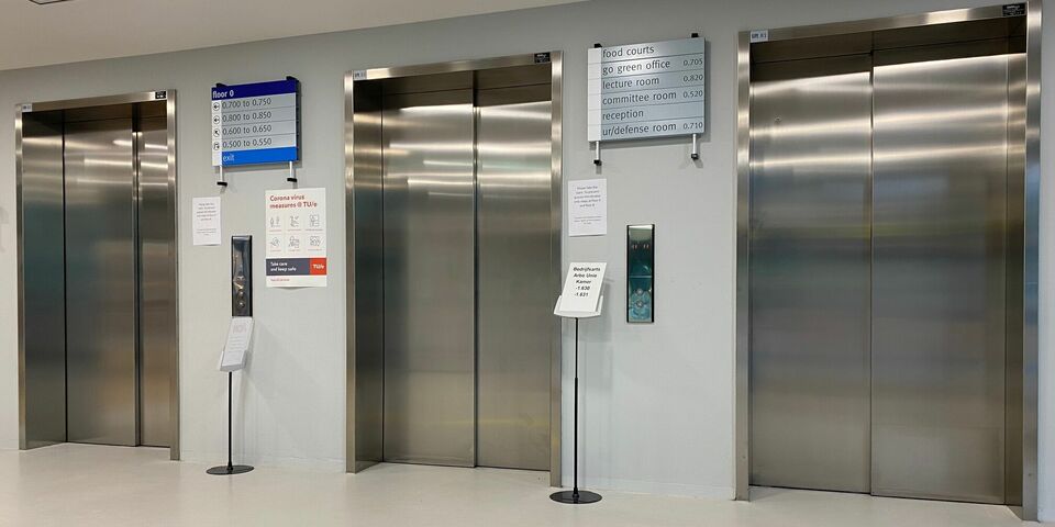 Het devies aan de TU/e blijft zoveel mogelijk thuiswerken, maar het zal de komende weken toch drukker worden op onze campus, zo is de verwachting. Maandag start het nieuwe academische jaar en vanaf 1 september mag er een dag per week op de universiteit gewerkt worden. Om rijen voor de liften in Atlas te voorkomen en social distancing te bevorderen, zijn de liften hier vanaf vandaag alleen nog te gebruiken van vloer 0 naar vloer 8 - en dit is een enkele reis. Naar beneden zal de trap gepakt moeten worden. Het wordt sowieso aangeraden om zoveel mogelijk met de trap te gaan.