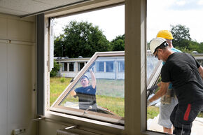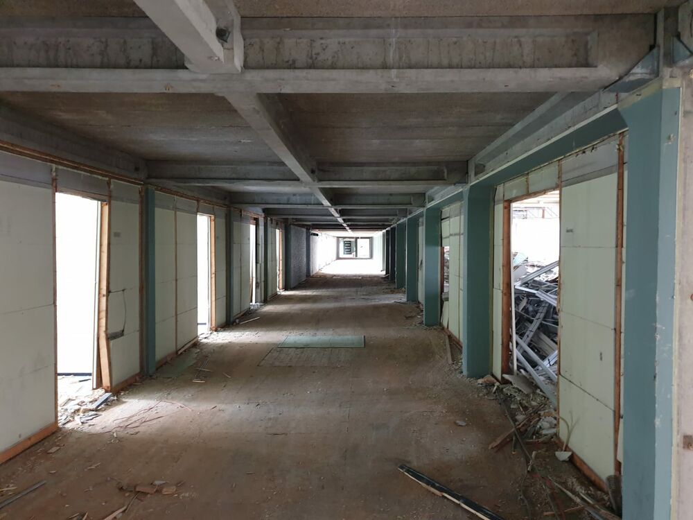 Ondertussen is Van Liempd slopersbedrijven al volop bezig in het gebouw. “De binnensanering van chroom VI en asbest kunnen ze al doen. En de stoelen in de collegezalen kunnen gedemonteerd worden”, vertelt Ebbers. Ook zijn er ramen verwijderd, die hergebruikt gaan worden bij Area51, het Eindhovense skaterspark. “Een mooi voorbeeld hoe circulaire sloop tot iets nieuws kan leiden”, zegt Ebbers. “Het duurt misschien iets langer, maar het levert meer op, omdat elementen met zorg worden hergebruikt.”