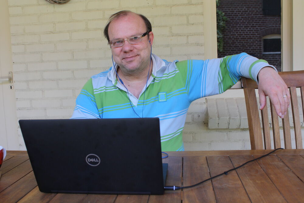 Het heeft voor een betere balans gezorgd, zegt hij. En ja, zijn vrouw is ook wel content dat haar echtgenoot nu wat meer thuis is. “Deels werk ik beneden aan de eettafel, dan brengt mijn vrouw soms een kopje koffie en trappen we een beetje gein. Als ik een wat serieuzere vergadering heb, zonder ik me even af en ga ik naar boven.”