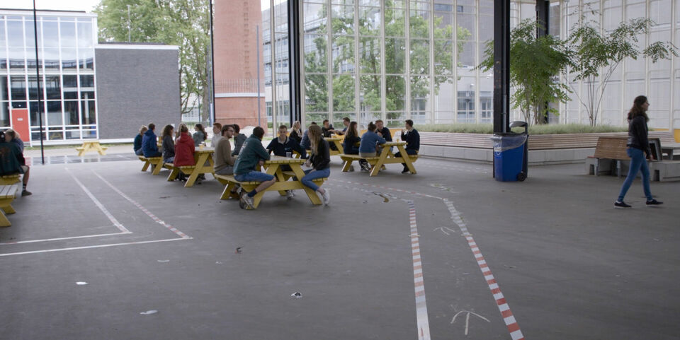 “Het grootste verschil met de borrels zoals we ze kenden en zoals ze in de toekomst zullen zijn, is dat je je er tegenwoordig van tevoren voor moet inschrijven en er dus niet meer zomaar kunt binnenlopen. Ook zullen ze voorlopig altijd buiten plaatsvinden en je moet verplicht zitten aan een van de tafels in plaats van staand met elkaar te keuvelen”, zegt Martje Wijnen, vicepresident van de Federatie Studieverenigingen Eindhoven (FSE). Die nieuwe regels moesten natuurlijk geoefend worden, en dat was tijdens een proefborrel in de markthal van MetaForum op donderdag 4 juni.