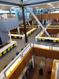 De opdracht van hogerhand was - en is - om de bibliotheek open te houden, ofwel “om in de mogelijkheid te voorzien om ook fysieke boeken te kunnen lenen. Daar hebben we een werkproces voor moeten bedenken”. Klanten kunnen de gewenste boeken nog steeds reserveren via de mail. Dagelijks gaat één medewerker van de frontoffice naar de campus om de gevraagde materialen te verzamelen en af te leveren bij de balie in Atlas, waar klanten hun bestelling vanaf 12.00 uur kunnen ophalen. Boeken kunnen daar ook weer worden ingeleverd, “maar we dringen er bij mensen op aan dat dat niet snel hoeft en werken met extra lange uitleentermijnen”.