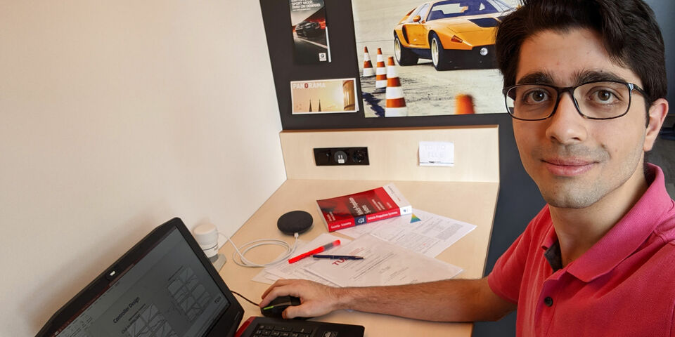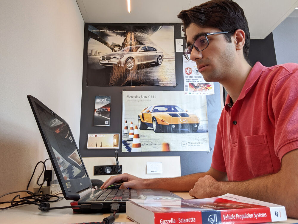 Ja, hij had zich zijn afstudeerpraatje wel wat anders voorgesteld, bekent Rustomji, masterstudent Automotive Technology. Zo had hij maar wat graag wat vrienden en studiegenoten om zich heen gehad - voor de morele ondersteuning “én ik keek er gewoon erg naar uit om mensen te vertellen over mijn werk”.