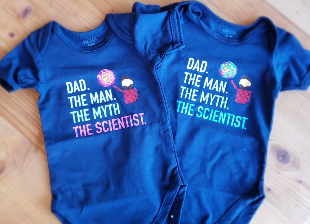 Daags voor het interview heeft hij buiten voor zijn huis nog even staan praten met aio’s David Schrijver, Anne de Dreu en Stijn Hoftstraat, die namens de Precision Medicine-groep langskwamen om toepasselijke kraamcadeautjes te brengen (zie bovenstaande foto). “Iedereen in de groep weet dat ze me tijdens mijn verlof updates mogen sturen, maar niet continu aan de bel mogen hangen. Maar de wetenschap en de groep zijn mijn science babies; ik vind het belangrijk om te weten hoe het met ze gaat.”