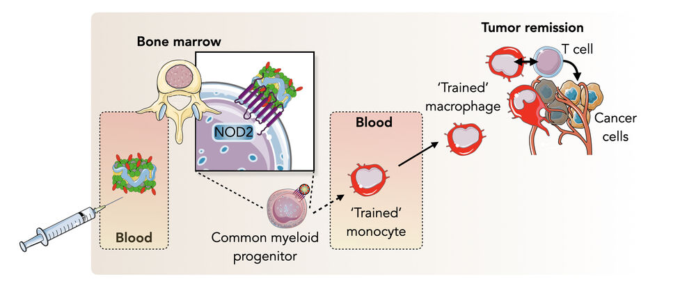 De onderzoekers creëerden een bibliotheek en na een uitgebreide screening identificeerden ze een nanobiologische hoofdkandidaat die effectief getrainde immuniteit induceert en een hoge beenmergvoorkeur vertoont. Vervolgens dienden de onderzoekers dit intraveneus toe aan een muismelanoommodel. De getrainde immuunrespons leidde tot de productie van getrainde myeloïde cellen in het beenmerg.