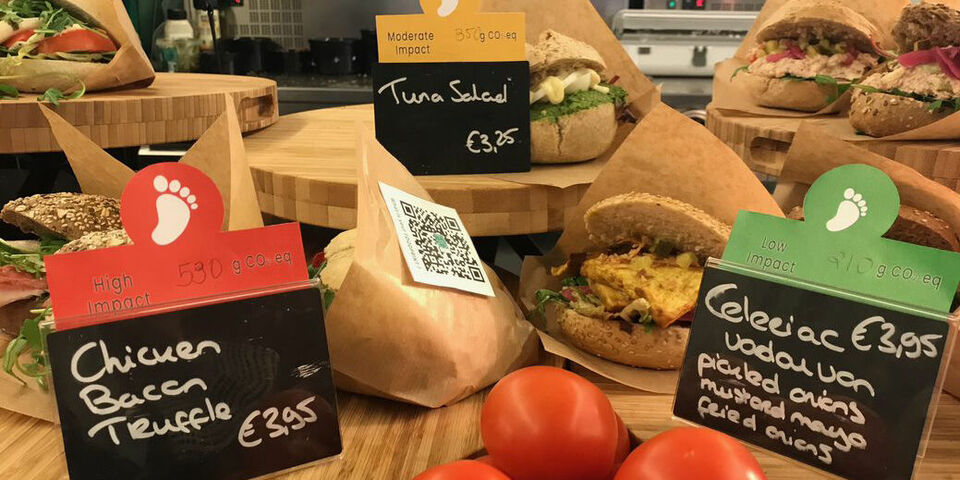 Zo krijgt een broodje kip-bacon-truffel een rood label, en een pompoenpanini een groen. De bol met doperwtenspread en ei zit in de middenmoot en scoort geel. Wie meer wil weten, kan een qr-code scannen. De studenten hebben zelf aan de hand van de ingrediëntenlijst de CO2-afdruk van alle lunchitems uitgerekend.