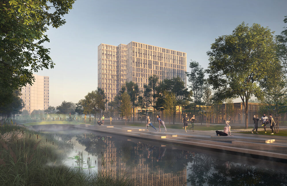 Heijmans zal de komende jaren twee woontorens met 653 studentenwoningen bouwen met daartussen laagbouw met nog eens 82 studentenwoningen. Het complex komt op de plek waar het Paviljoen stond, het voormalige onderkomen van de faculteit Industrial Engineering & Innovation Sciences. De laagbouw zal bestaan uit twee verdiepingen, elk met een eigen keuken, sanitair en dakterras. Het ontwerp daarvan is gebaseerd op het Olympisch dorp van de Spelen in München in 1972. Het laagbouwdeel moet het ‘sociale hart’ worden van het wooncomplex met onder meer een kringloopwinkel, een creatieve ruimte en andere ruimtes die in overleg met studenten ingevuld zullen worden.