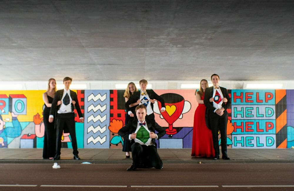 Het heldenthema Heroes Like You dat de TU/e heeft afgekondigd voor het lustrum, komt ook terug in het gala. “Het blijft natuurlijk een chic gala”, zegt Wentzel. “Maar de link zul je meerdere keren op de avond terugzien. Er zijn bijvoorbeeld borrels en cocktails met heldentitels en in heldenkleuren. Ook in de promotie zal het thema terugkomen.” De commissiefoto hierboven is daarvan alvast een voorproefje.