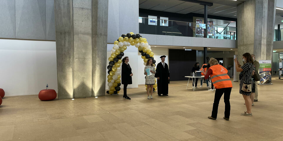 Aan 250 studenten op één dag coronaproof een diploma uitreiken is niet niets. Daar weet organisator Suzanne Zaaijer van het Center for Student Administration (CSA) alles vanaf. "Er mogen maar vier mensen per afgestudeerde mee en daarbij mogen ze maar tien minuten binnen blijven." Dat houdt in dat Tom van Woensel, voorzitter van het opleidingsbestuur, per student maar twee minuten heeft om het diploma uit te reiken. Van Woensel: "Het is fijn om al die mensen terug te zien. Het moet kort, want we moeten 250 diploma’s uitreiken, maar het is leuk."