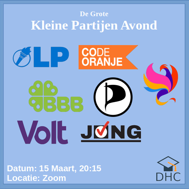 Stel je brandende vragen rechtstreeks aan zeven politieke partijen die nu nog niet in de Tweede Kamer zitten, maar daar wel graag in terechtkomen. Dat is de mogelijkheid die H.S.A. Confluente alle jongeren biedt. De Eindhovense studievereniging heeft samen met een zustervereniging een online partijenavond georganiseerd waar je kunt vernemen wat de plannen zijn van LP, Volt, Splinter, BoerBurgerBeweging, Jong, Piratenpartij en Code Oranje.