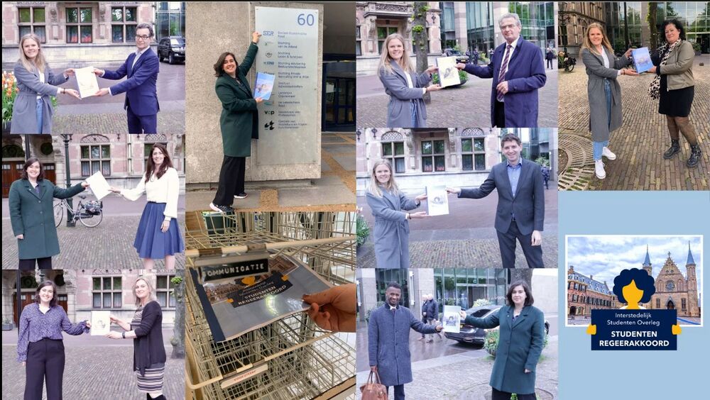 Een echte overhandiging zat er nog niet in, dus woensdag wachtten de studenten van het ISO op het Binnenhof tot Tweede Kamerleden naar buiten kwamen. Ze gaven hun een voor een het ‘akkoord’. Ook legden ze het in het postvakje van informateur Mariëtte Hamer, die de mogelijkheden voor een nieuw kabinet verkent.