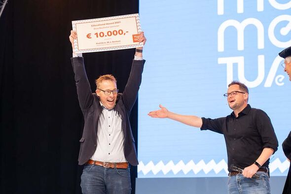 “Ik reed op m’n mountainbike in het bos, toen het bericht van de nominatie binnenkwam”, zegt Mark Bentum, professor Radio Science bij Electrical Engineering. “Dat was op een zondag en tijdens een pauze checkte ik m’n mail, - ja, zo verslaafd ben ik wel - en ik voelde me daardoor al zó geëerd.” Er werd hem gevraagd een pitch van maar liefst zeven minuten te houden voor de SAO (Student Advisory Body) en daar heeft hij zich heel goed op voorbereid. “Ik deed mijn uiterste best en het werd een echt leuke bijeenkomst waar de studenten heel kritische vragen stelden.” Dat was in juni en daarna was het stil tot MomenTUm.