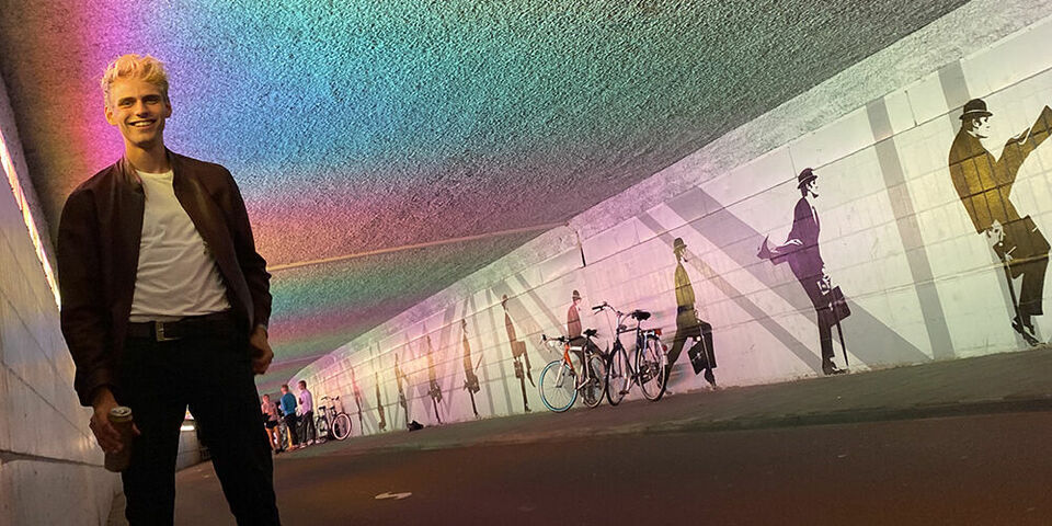 “Dat vind ik het mooie aan licht: het is niet tastbaar, maar het heeft wel effect.” Tim de Jong (22), die een natuurkundebachelor deed en nu met de premaster Industrial Design start, heeft iets met lichtkunst. Hij is ook voorzitter van studententeam IGNITE: “We ontwerpen interactieve lichtinstallaties, onder andere voor lichtfestival GLOW. Maar het werk in de tunnel - Een Eindje Mooier, noem ik het - heb ik volledig op persoonlijke titel gemaakt.”