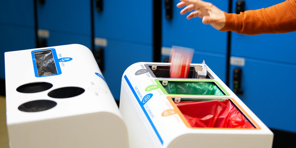 Cindy Beckers, die voor schoonmaakbedrijf Asito de Radboud Universiteit en de TU/e onder haar hoede heeft, vertelt het verhaal van de afvalcoaches. Ongeveer twintig medewerkers die overdag schoonmaken in de publieke ruimtes van de campus, hebben van afvalverwerker Renewi geleerd hoe belangrijk het is om afval te scheiden. Een van hen is John Jagroe, hij werkt in het Auditorium. “Ik hoorde dat het veel energie en geld kost als Renewi achteraf het afval moet scheiden. Nu ga ik er goed voor zorgen dat we alles gescheiden aanbieden. Ik sta er nu ook meer achter dat de prullenbakken uit de collegezalen hier zijn weggehaald. Eerst had ik mijn bedenkingen, ik wil geen rommel van de vloeren rapen. Maar we dwingen nu eigenlijk de studenten om het afval in de Tulips (bakken waarin afval gescheiden ingezameld wordt, red.) te doen en ik zie dat het werkt.”