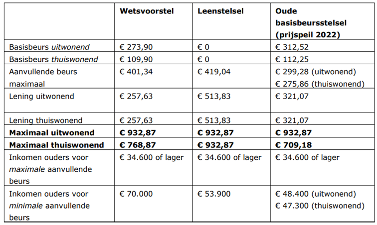 Minister Dijkgraaf sprak al met de Tweede Kamer over zijn plannen en heeft zijn oorspronkelijke voorstel enigszins aangepast. De bedragen zijn met bijna twee tientjes per maand verhoogd: 273,90 euro voor uitwonende studenten en 109,90 euro voor thuiswonende studenten (in plaats van 255 euro en 91 euro).