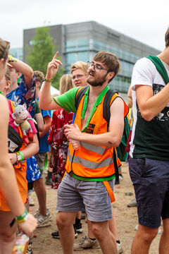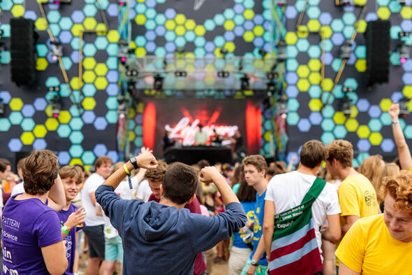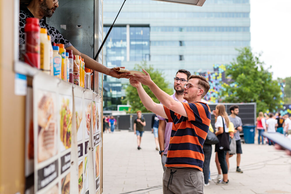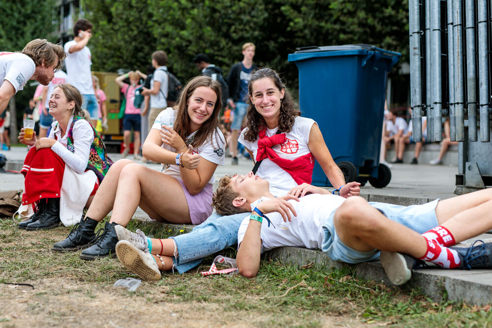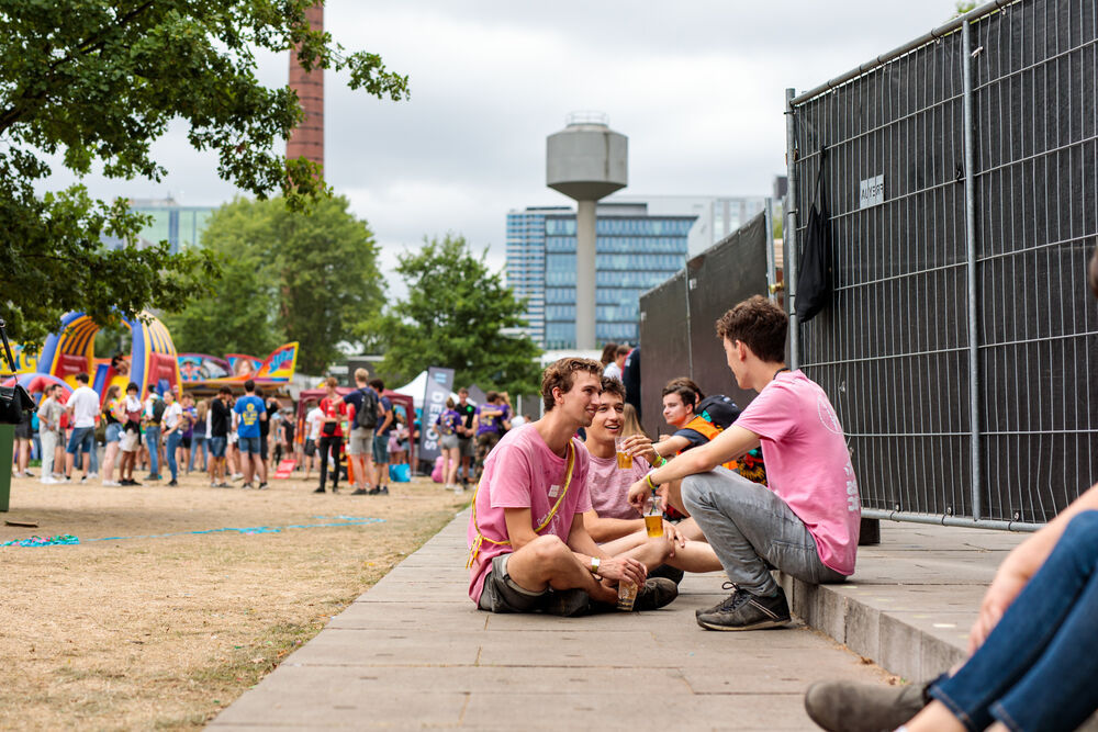 De bankjes langs het Fluxveld zijn voller dan de dansvloer. En de rijen voor de foodtrucks zijn langer dan die voor de bar. Maar toch: de sfeer is gemoedelijk en op de gezichten is behalve vermoeidheid ook gelukzaligheid te lezen. Het is vrijdag, de laatste dag van de Intro 2022. Iedereen komt samen voor de laatste loodjes: het eindfeest All TU/egether.