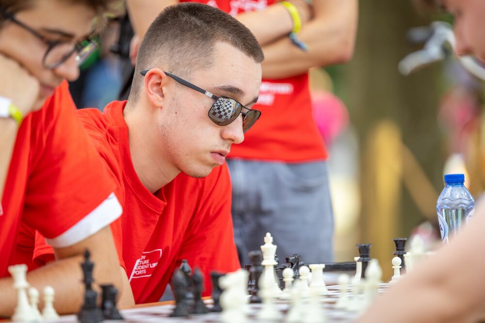De gezelligheidsverenigingen en studieverenigingen staan ten slotte samen op het Fluxveld, waar bij roeivereniging Thêta stoere studenten in de volle zon tekeergaan op roeimachines. Gelukkig is er een waterbaan nabij voor verkoeling.
