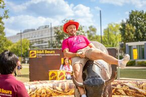Iedere vereniging of organisatie die zich richt op TU/e-studenten, trekt op de Campusmarkt alles uit de kast om op te vallen: wedstrijden, prijzen, fotobooths, uitdeel-goodies en spektakel. Maar ook de bezoekers zelf trekken de aandacht: veel Introgroepen hebben zich feestelijk uitgedost met Koekiemonsterogen, voelsprieten, aureooltjes, bruidssluiers, Smurfenmutsen, sombrero’s of koksmutsen.