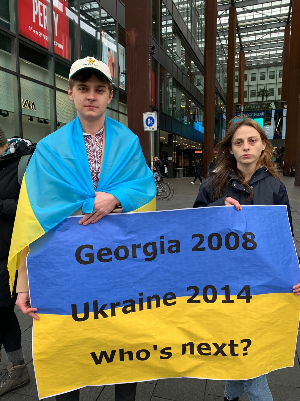 Donderdagochtend meldden de eerste demonstranten zich op het 18 Septemberplein in Eindhoven. Sinds Rusland Oekraïne is binnengevallen, hebben ze geen oog meer dicht gedaan. Toch verwachtten de demonstranten al langer problemen, gezien de eerdere gebeurtenissen in Georgië en Oekraïne, zoals ze ook op hun spandoeken duidelijk maken. Oleksandr Ivanenko: “We waren al langer bang voor een oorlog.” Pavlo Burda: “De invasie is echt verschrikkelijk. We zijn hier om ons te laten zien. In Den Haag en Amsterdam zijn grootschaligere protesten, aangezien daar meer Oekraïners wonen.”