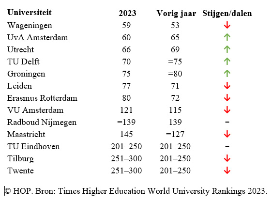 Volgens de Britse ranking behoren nog altijd tien Nederlandse universiteiten tot de beste tweehonderd van de wereld. Slechts vijf landen hebben er meer: de Verenigde Staten, Groot-Brittannië, Duitsland, Australië en – voor het eerst – China.